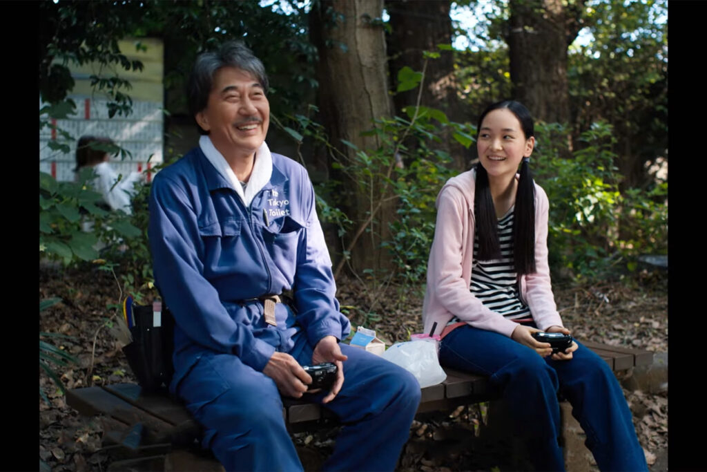 Sin embargo Hirayama no realiza estos patrones de conducta por creencias religiosas o pertenencia a un culto. El personaje ve en la belleza de lo pequeño y el hábito una razón para vivir. Estos “días perfectos” tienen una justificación en sí. Son producto del esfuerzo por reducir el ruido y aumentar el volumen de aquello que importa. Hirayama vive una vida análoga fuera de las redes sociales y el ruido de internet. Win Wenders lo presenta como el personaje idílico e hipotético de los tiempos de la pospandemia. La soledad de Hirayama es positiva, contemplativa y reflexiva. El mundo es más bello cuando se mira de cerca y a un ritmo lento (similar a la propuesta de Belleza Americana). Uno de los mejores ejemplos es la idea del komorebi, una palabra japonesa para describir las sombras que se producen por la luz de sol que traspasa las hojas de los árboles. El disfrute del komorebi en Hirayama está presente en su vida cotidiana: cuando va a almorzar al parque, cuando algo lo interrumpe en su trabajo, en sus sueños y probablemente en los libros que lee.
